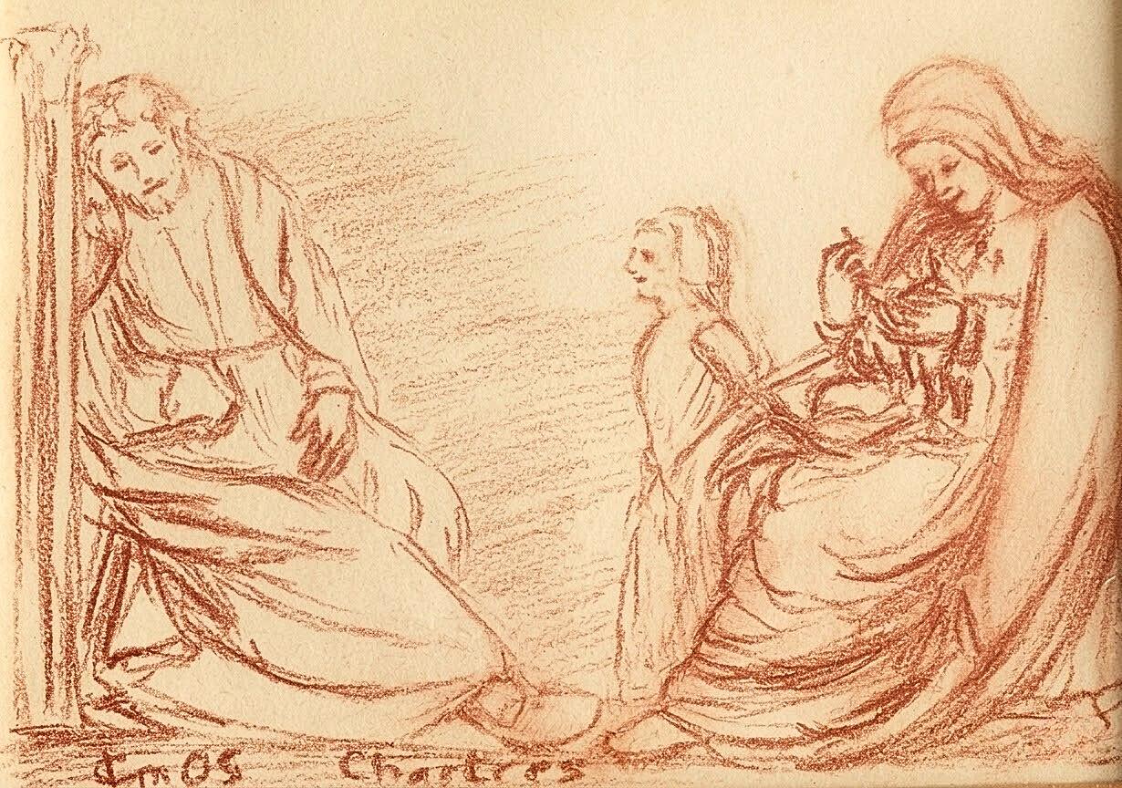 Mon dessin à la sanguine cherche à restituer ce contraste entre le repos de Joseph