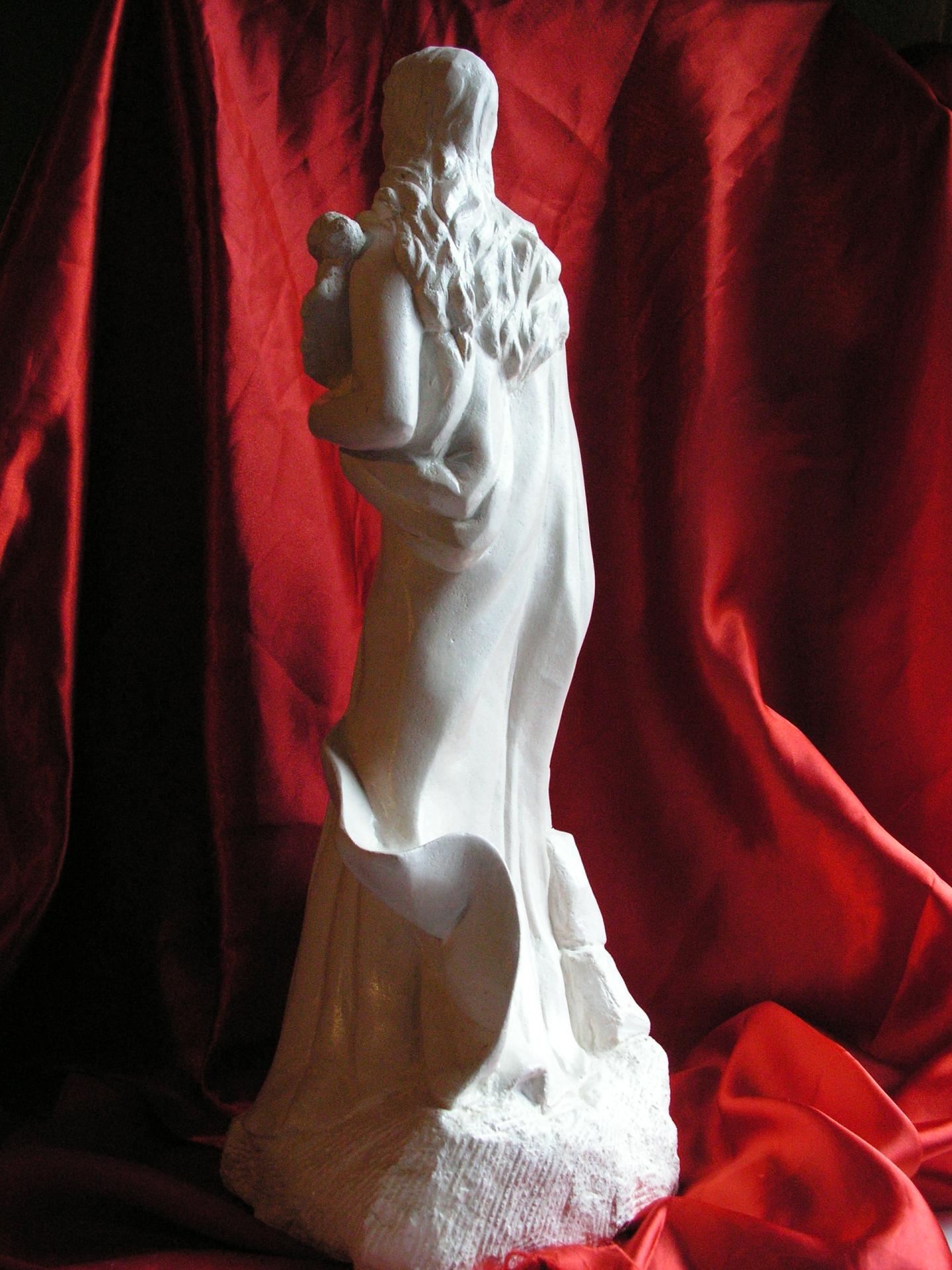 Sculpture en argile, ronde bosse, Notre Dame de l'étoile, statuette en terre cuite de 30cm
