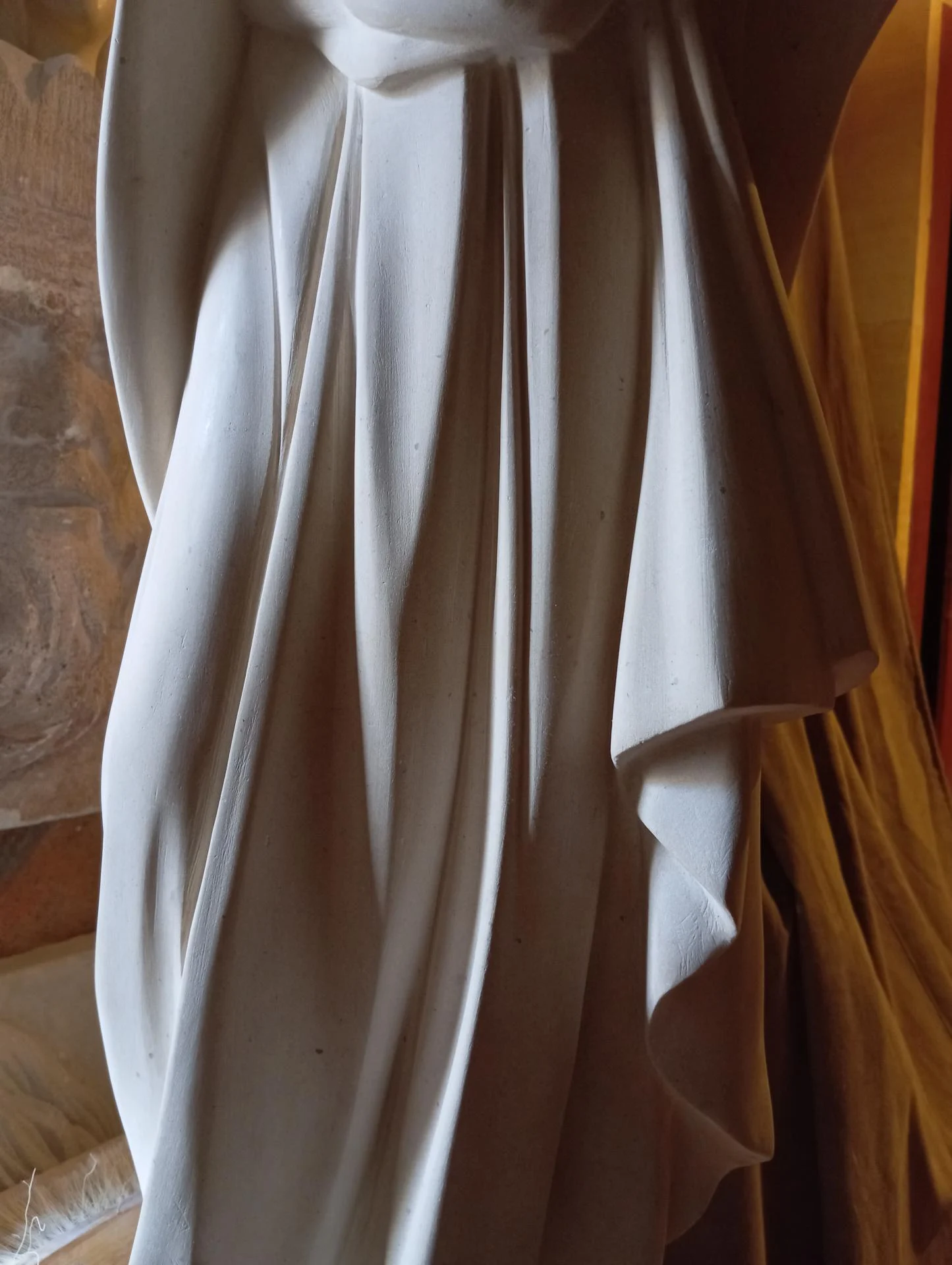 Détail du Drapé — Finesse des Plis du Manteau Sculpté dans la Pierre Calcaire
